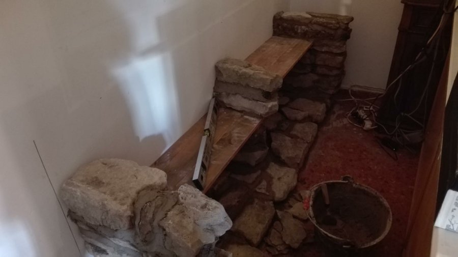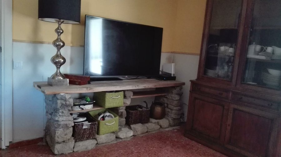 Primero buscar piedras, tan sencillo y tan gratificante. Cuanto más planas y del tamaño de un ladrillo de hormigón, más fácil y mejor es el resultado. Nosotros hemos utilizado 2 sacos de cemento, por lo que el coste de este mueble son 2,85€.