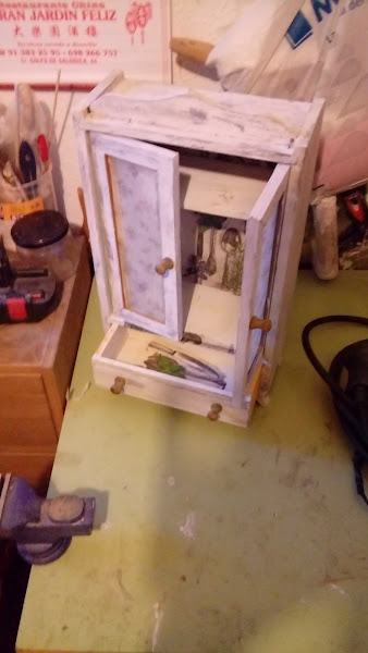 También en el fondo de la caja le pinte de blanco y le puse papel de servilleta. Y con los sobrantes de esta sevilleta dentro de la cajonera. En los ventanales también puse papel de servilleta.