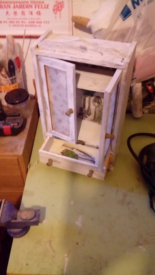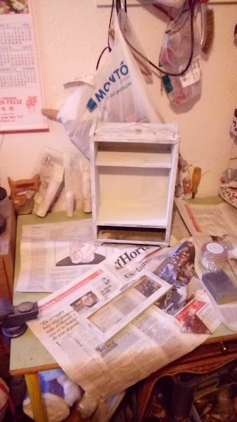 Pues asi quedó no sin echarle una mano de cera con color roble para darle un aspecto envejecido. Me ha parecido unas técnica muy sencilla, pero a la vez gratificante y muy divertida. Que sienta muy bien en cualquier rincon de nuestra casa.