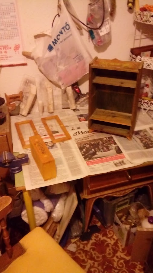 Como siempre hay que revisar el estado de conservación del objeto a trabajar. Está muy sucio pero está vez no lo voy a limpiar con nada, porque voy a utilizar la famosa pintura a la tiza (del sobrante que tuve para el baúl) de la marca la pajarita. Sobre todo queria probar como funciona sin el soporte limpio. Bien pues una vez echada la primera capa gris deje secar, cosa que va muy rápido lije un poco con lija fina bruñi con estopa y en las zonas que quería más desgastado le eche un poco de cera. Y ya de aquí lije con grano grueso de 80.