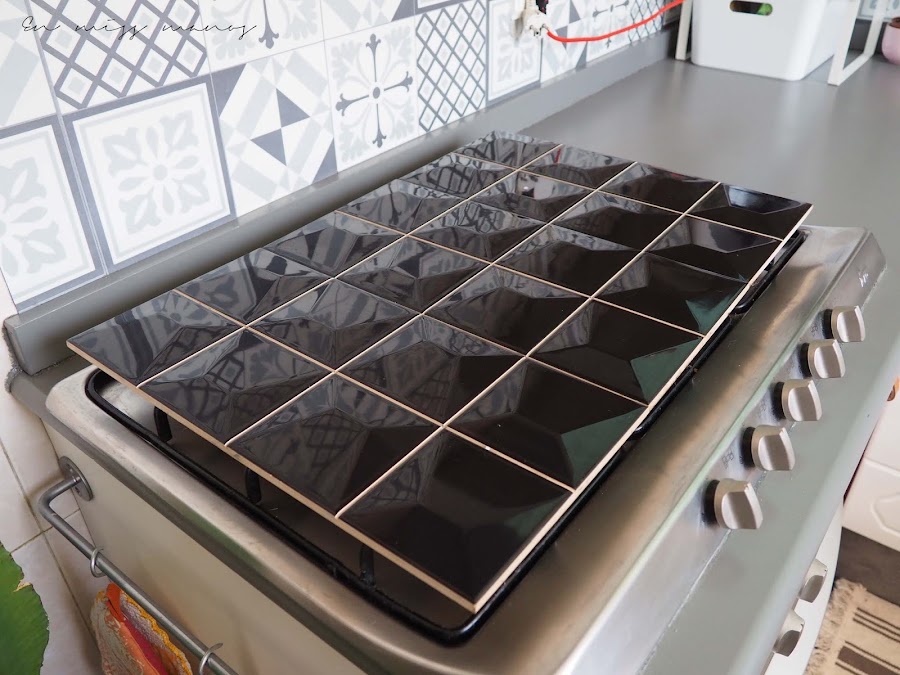 Para los fuegos, he colocado para taparlos unos azulejos que también rescaté del contenedor hace mucho tiempo. Yo y mis rescates...