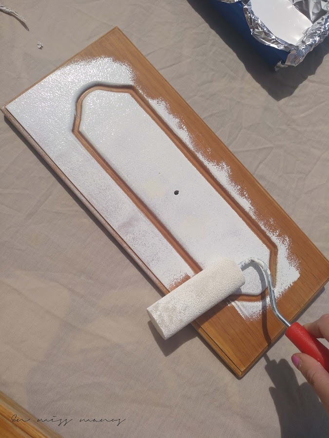 Para pintar eso y las puertas de abajo del mueble utilicé un esmalte mate de la marca Luxens.