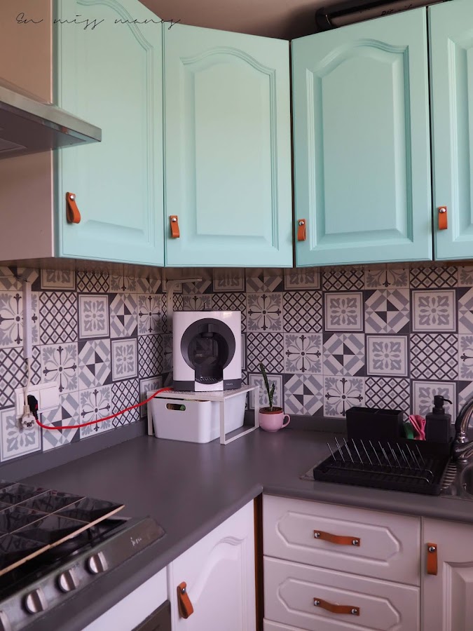 Para las puertas de la parte de arriba, me decanté por un tono aguamarina, también mate.