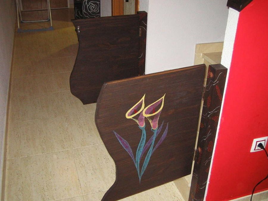 Laurayfan nos explica cómo nació esta simpática baranda: “mi enanillo está ya con ganas de salir corriendo, y cansada de ir a buscarlo a mitad de la escalera decidí hacerle una puertecita para que no pueda subir”. El proceso, según afirma, es muy sencillo, basta medir el hueco y cortar la madera a medida. El encaje desigual de los batientes se hace con la sierra caladora. “coloque dos vigas porque el escalón sobresalía un poco, ya sólo queda pintar, instalar las bisagras, poner un cierre, ¡y a decorar!”