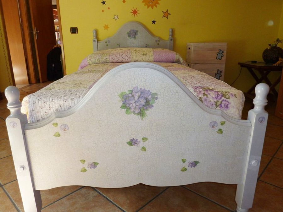 Completamos el sensacional escaparate con un bellísimo adorno de Yoymisideas. “La cama no la he construido yo; la compré sin barnizar y yo sólo la he pintado y decorado”. A pesar de la modestia de nuestra lectora, su espléndido craquelado ha despertado admiración en el foro. Finalmente, madre e hija se divirtieron poniendo los alegres stickers en la pared, sobre el cabecero.