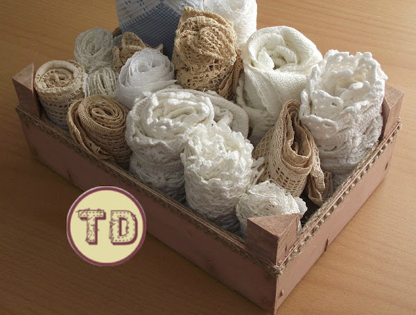 He decorado una caja de fresas, ahora que es tiempo de ellas, utilizando la pintura rosa chicle de las milky y muy poquitos adornos: cinta de yute y sandunga de rafia. Y así, con pocos elementos tan naturales, conseguimos un efecto apacible y sereno, ideal para organizar cintas, papeles, telas, etc.