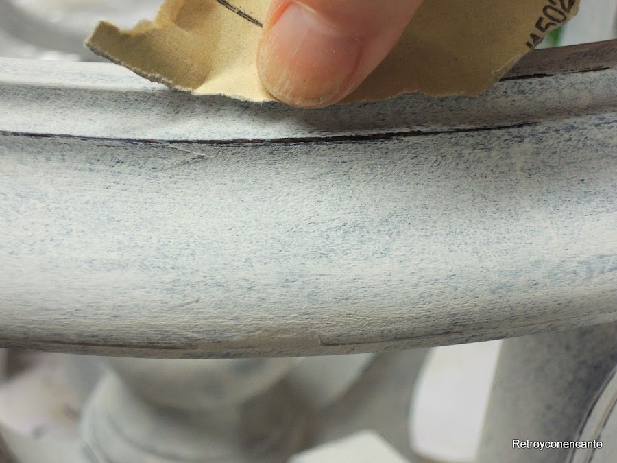 Pero necesita una tercera capa de pintura para lograr el resultado que buscamos, esta vez sin cera para que la pintura agarre bien del todo. Y vuelta a lijar suavemente.