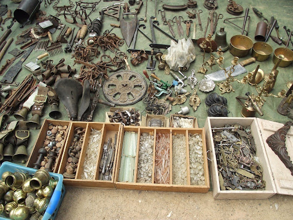 (No puedo evitar, cuando visito un rastro, pensar que estos artículos seguramente un día fueron muy preciados para sus dueños; por ejemplo esa sopera blanca podría haber formado parte de la dote de alguna muchacha casadera hace la tira de años, ¿verdad?. Y pienso cómo sería la muchacha, si le haría ilusión casarse, la primera vez que sirvió sopa...).