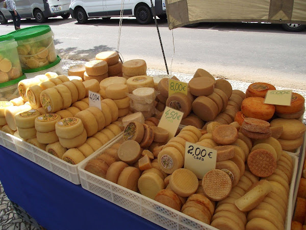 Me faltó hacer fotografías de los puestos de verdura, que también son espectaculares, así es que tengo una disculpa para volver dentro de poco.Es curioso porque mi marido, a quien el ir de compras le horroriza, siempre está dispuesto a acompañarme a Estremoz, no sé si por las antigüedades en sí o por las torradas (tostadas hechas con pan rústico) que desayunamos antes o por la compra de los quesos que hacemos después.
