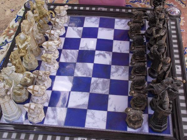 Auténticas joyas, como este ajedrez con las piezas de hierro pintadas a mano: