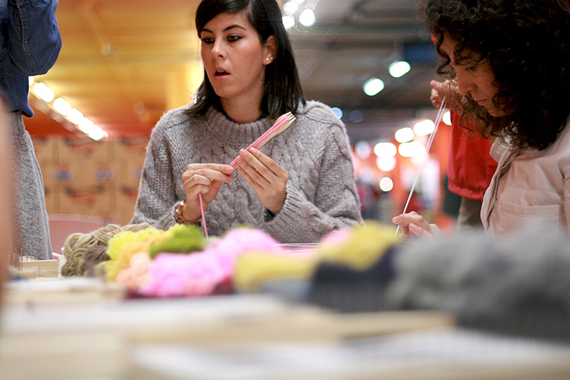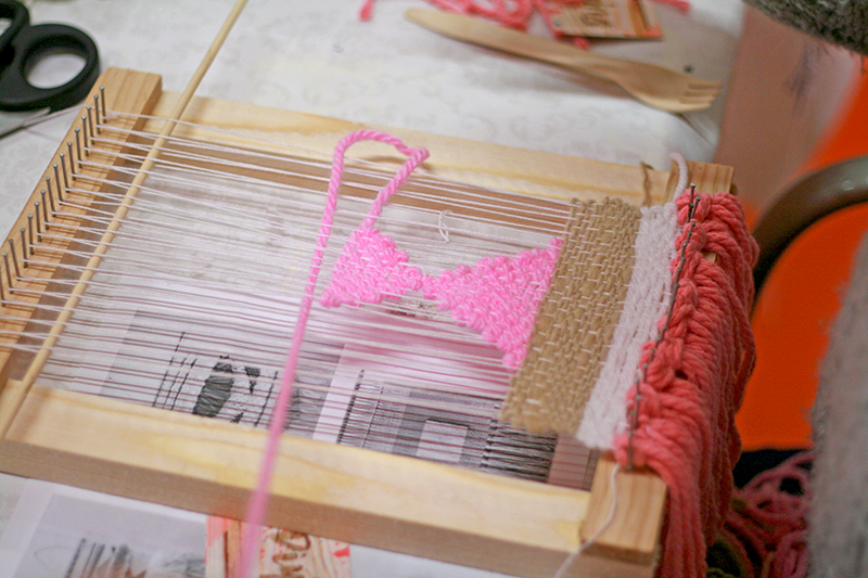 Para muchas de ellas esta era la primera vez que tejían en telar y creo que se fueron con los conceptos claros. Me encantó saber que además mucha gente que pasaba por allí quería aprender la técnica, así que seguramente muy pronto empezaremos una nueva sección donde os enseñemos a hacerlo. Los tejidos que salen son muy decorativos, además de versátiles, podéis hacer complementos o reciclar algunas prendas que creemos ya pasadas de moda, añadiéndole un pequeño tejido hecho en telar.
