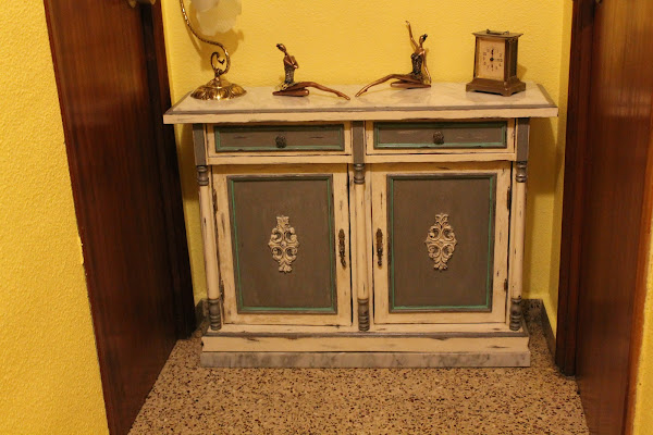 Las pinturas que he utilizado son Chalky pintura efecto tiza y para terminar le di con crema Cera Alex y este es el resultado.