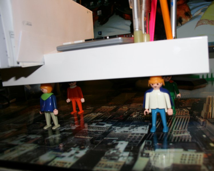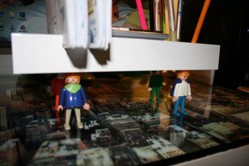 De patas he colocado cuatro muñecos que los he pegado con loctite al tubo de aluminio.