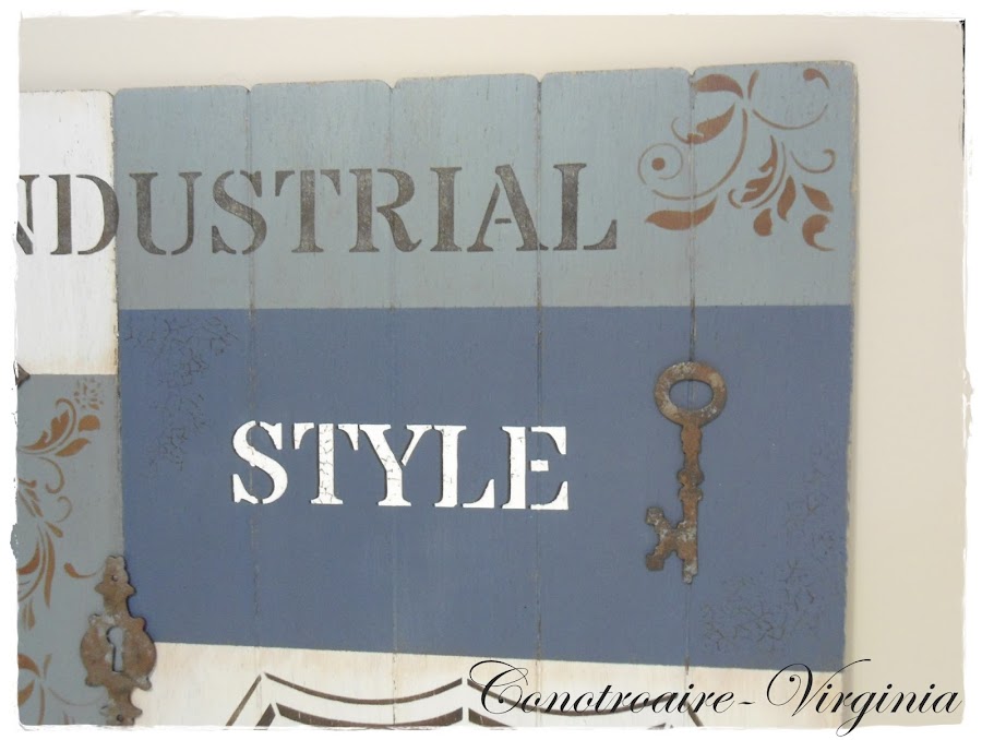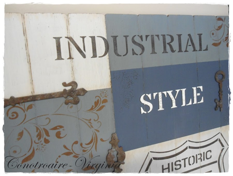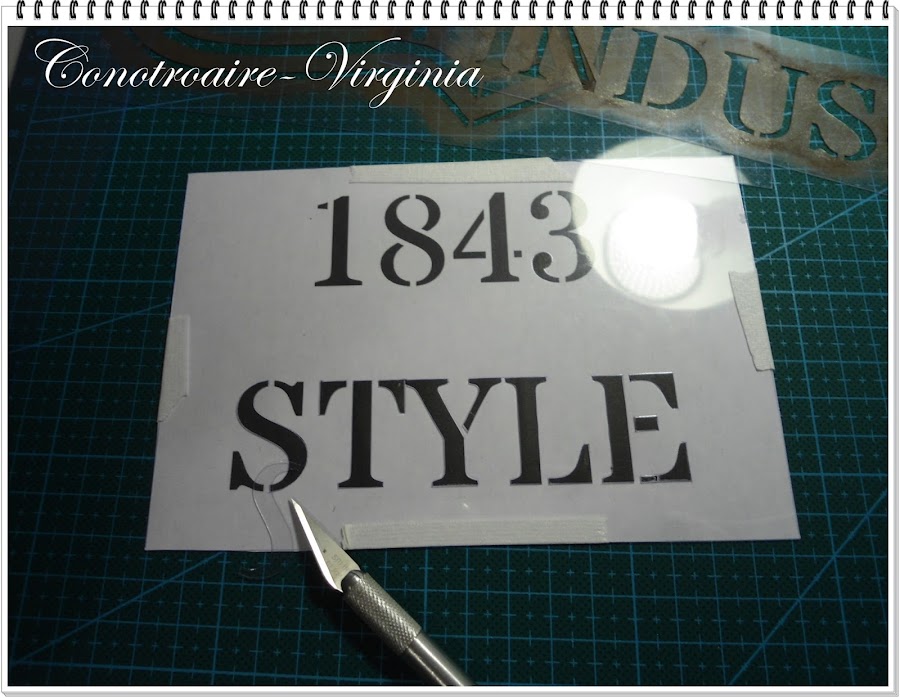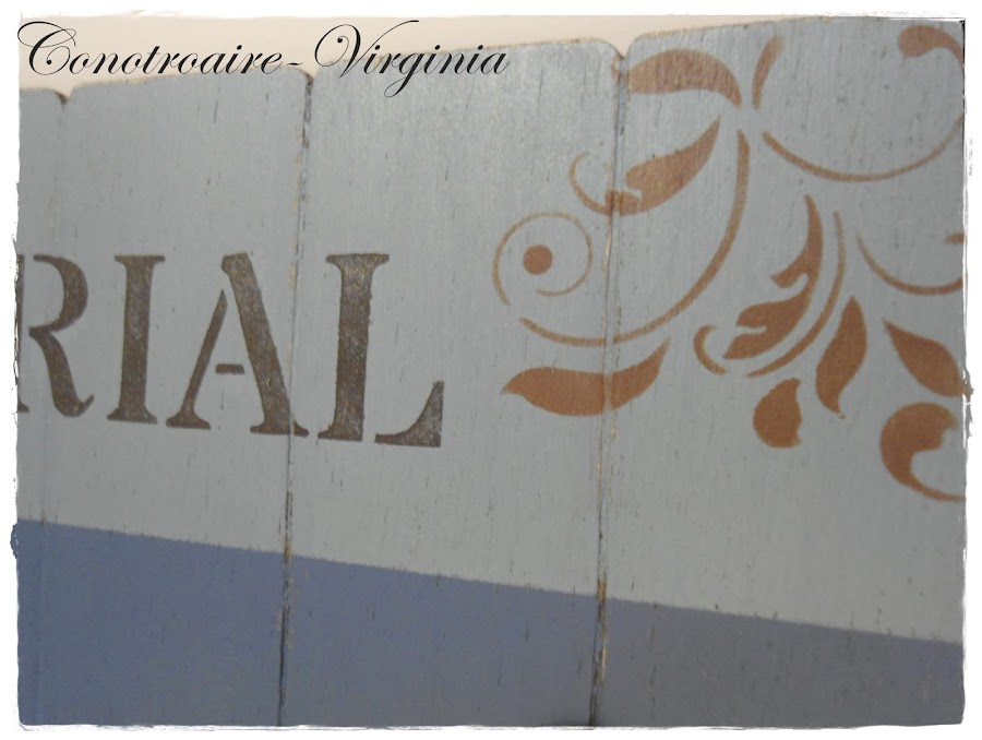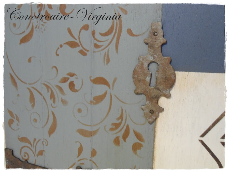 Básicamente, toda la decoración esta hecha con stencils y troqueles, y un sello imitación a craquelado.