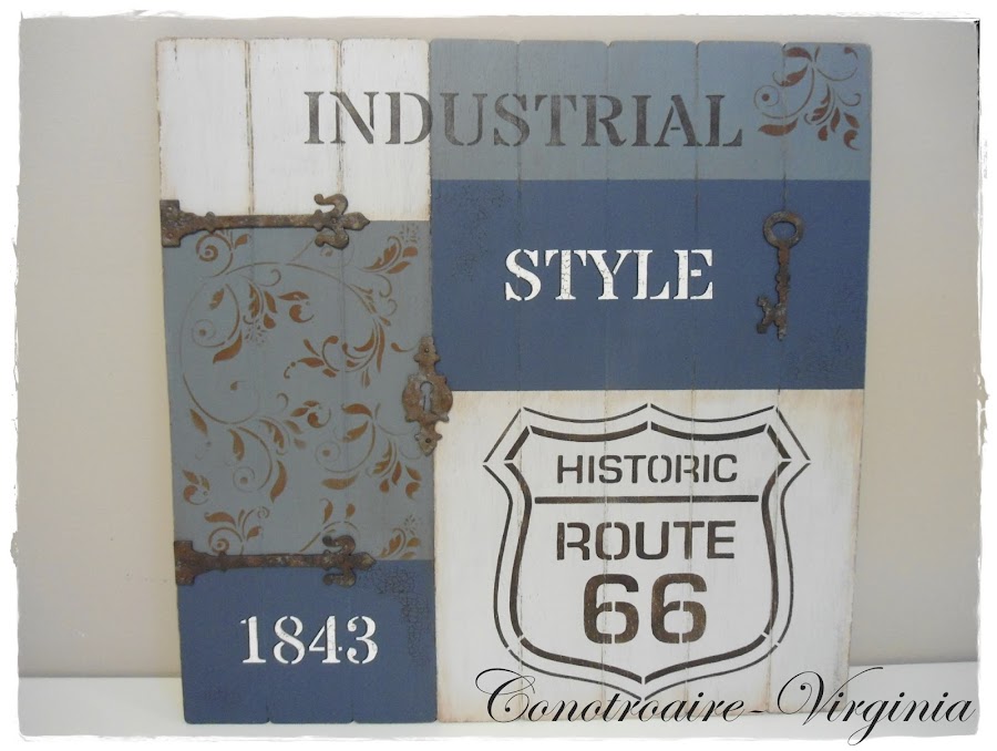 Los stencils (excepto el floral), los he hecho a mano, para que fueran de la medida del cuadro.