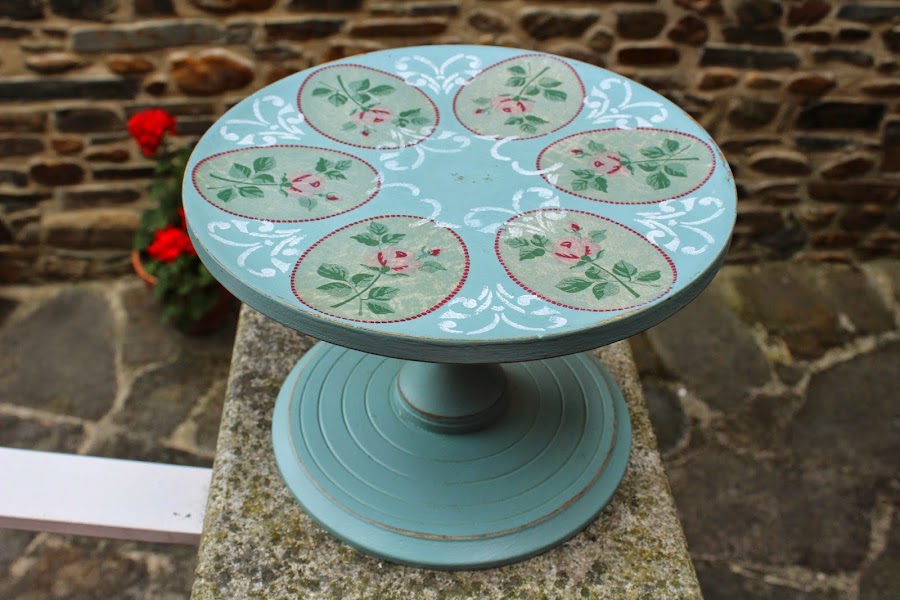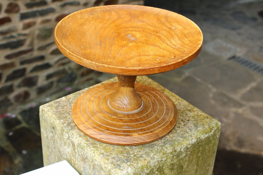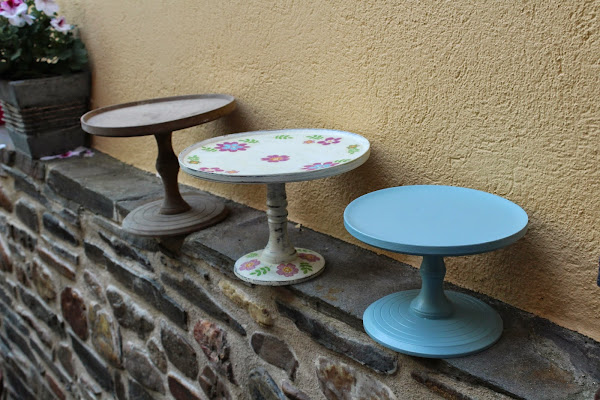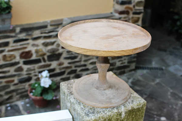 Bueno, ahora que estoy de vuelta en casa, os cuento alguna cosa que hicimos antes de marchar y, por falta de tiempo, no pude enseñárosla. Sabéis que voy abriendo cajas que tenía guardadas y voy encontrando cosas. En la casa había tres pies de tarta de distintos tamaños. Como, antiguamente había sido una casa de comidas, pienso que se utilizaban para poner el queso al final de la comida como era costumbre en Galicia.