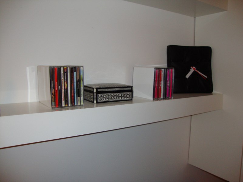 Este es el porta cds fabricado con aluminio Y aquí el sujetalibros