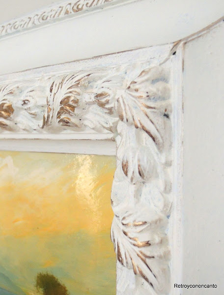 Antes de pintar, pasamos una vela por los relieves dorados, con la intención de que parte de éstos aparezcan cuando lijemos para envejecer ligeramente el trabajo. Queremos agradecer a una de las Julias la mano que nos ha echado en todo el proceso... ¡Son días para trabajar y disfrutar en familia!