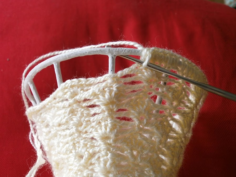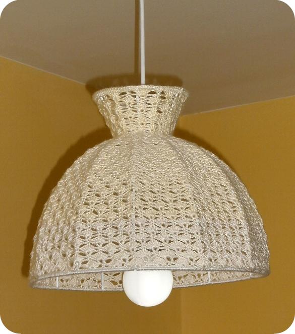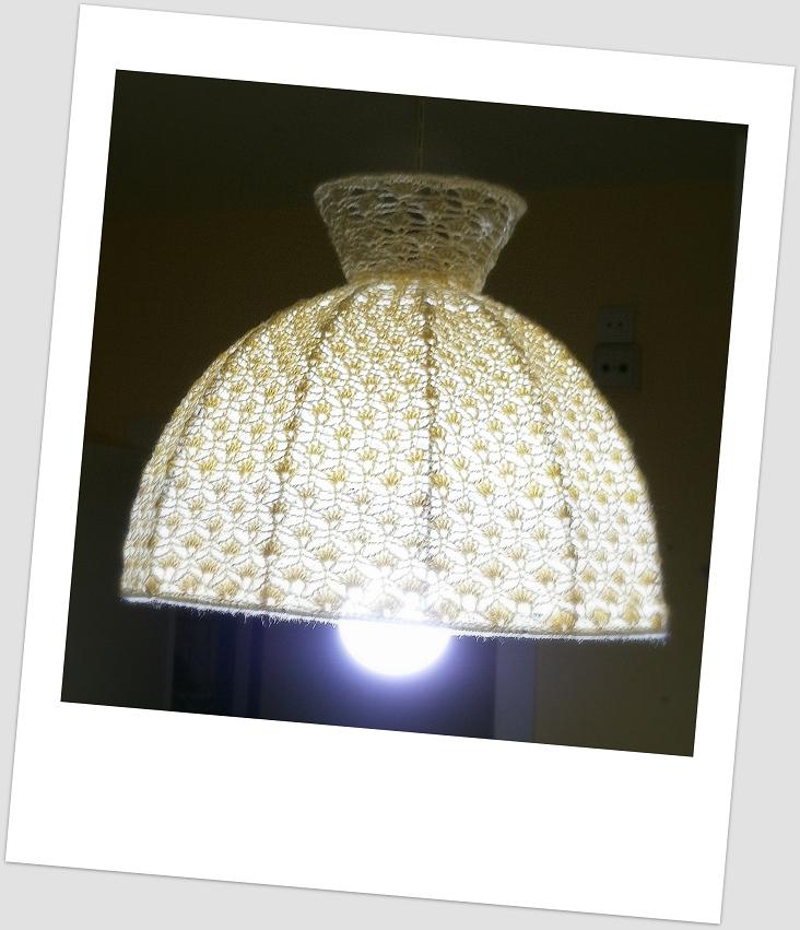 Comenzamos la primera fila con el propio armazón de la lámpara, y la fuimos haciendo sobre él, lo cuál resultó bastante incómodo.