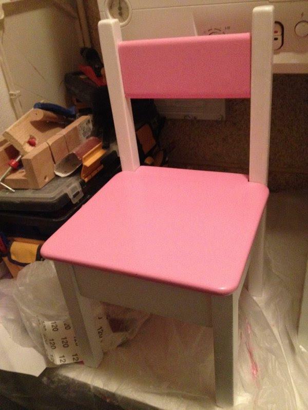 Por último , recorté de una pieza de contrachapado finito las letras de su nombre con la segueta y las pinté y pegué en el respaldo para darle un toque de personalización.