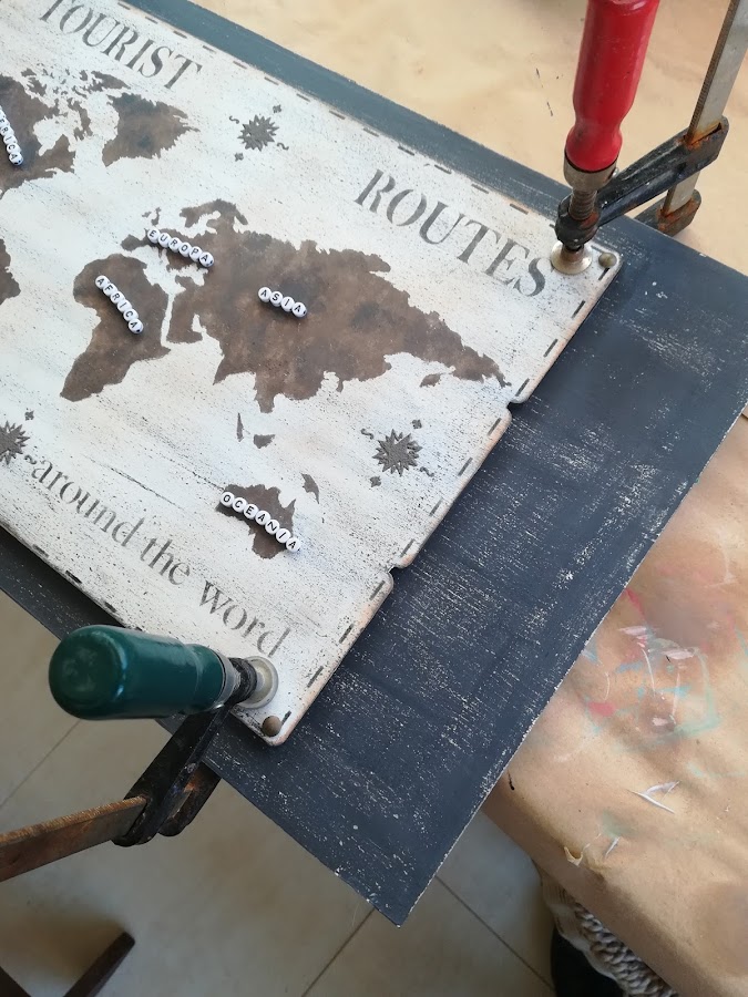 Formé las palabras.....los continentes....como casi siempre que se hace algo con letras, me faltaron A y tuve que usar V dándoles la vuelta y pintándoles un palito horizontal, convirtiéndolas en A