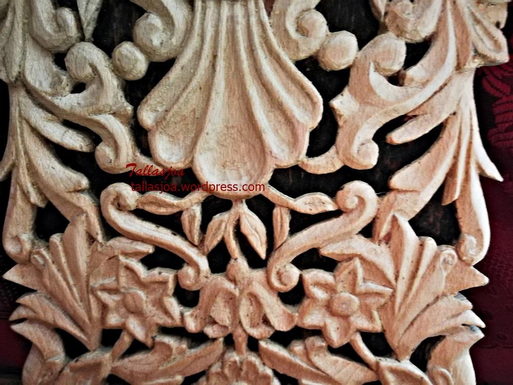 El tratamiento que se le ha dado en esta ocasión ha consistido en dar en el fondo tinte de judea para oscurecerlo y resaltar mas los motivos, que se han dejado en el color natural de la madera , posteriormente se ha encerado