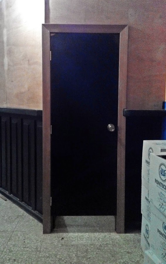 Aquí ya podéis ver la puerta colocada, con las guarniciones y todo, muchos os preguntareis porque la puerta esta tan separada del suelo, pues a ver, la puerta se aprovecho y su longitud era de 160 ya que estaba recortada, entonces la subí hacia arriba para que al entrar no haya que agacharse y a la vez sirve de respiradero a la zona del almacén.