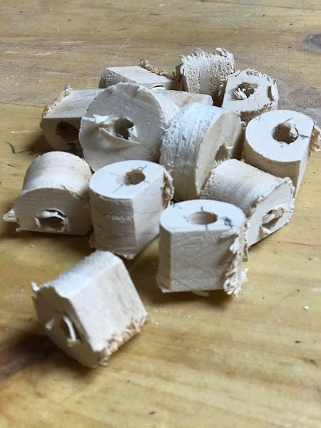Con rodajas de encina hice un puente colgante. Para que la unión fuera mas firme le coloqué cola de poliurétano y le puse pinzas durante 24 horas.