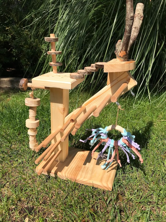 Lolo, el agapornis de mis sobrinos, se lo va a pasar pipa en su super parque de atracciones.