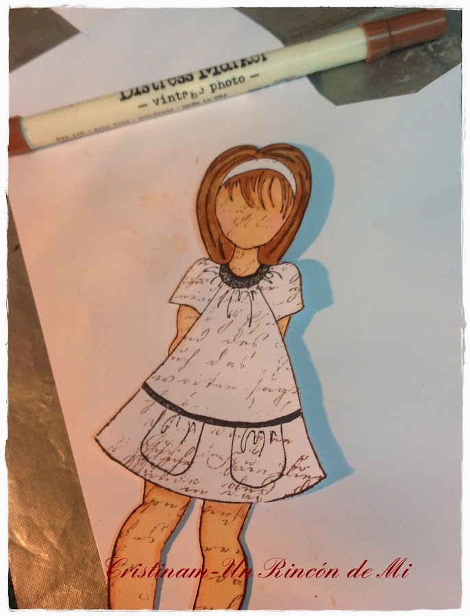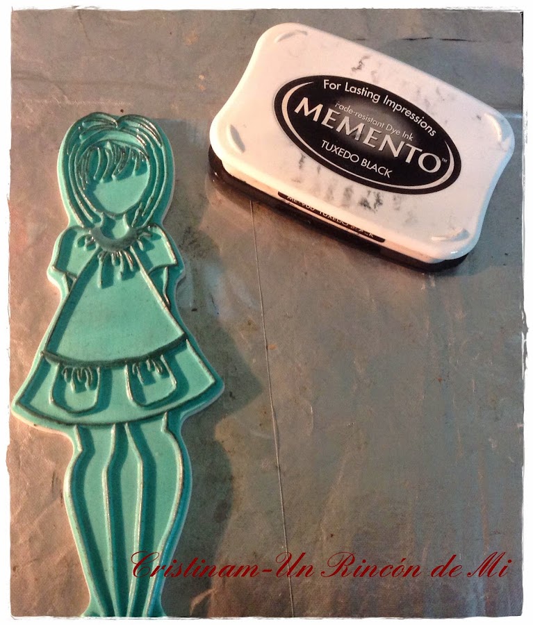 De esta forma al estampar el dibujo de letras con el sello doy un toque mas especial a la muñeca.