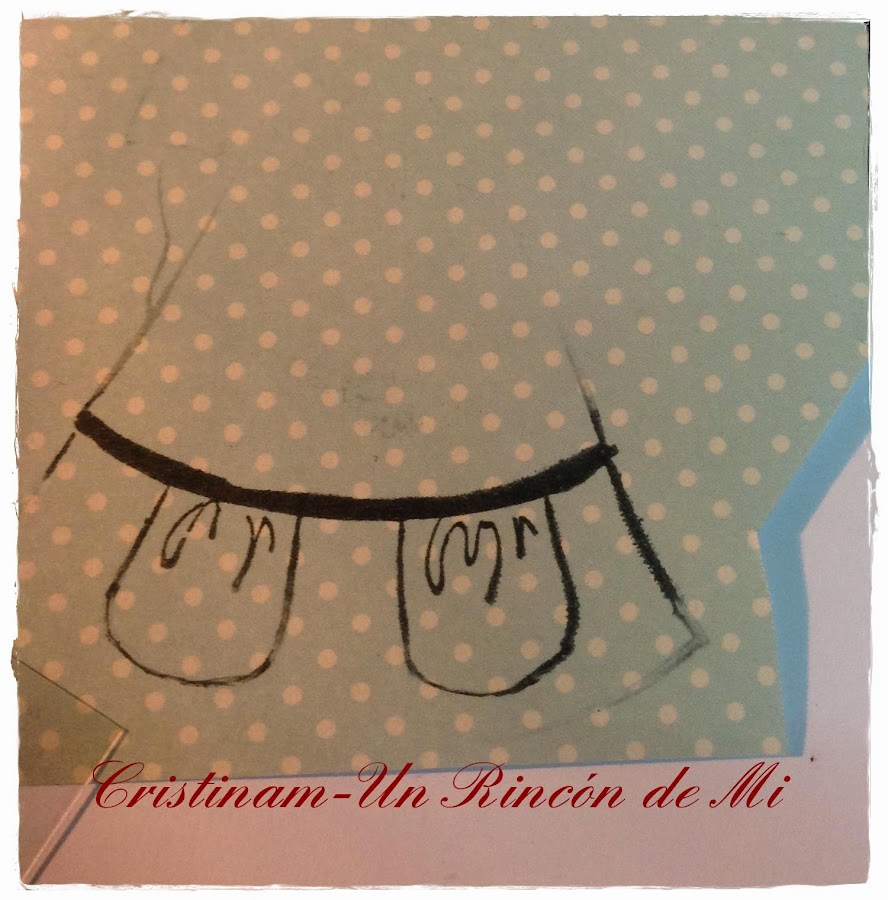 Hago lo mismo con los bolsillos y con la cinta del pelo.. esta vez uso un papel azul con topitos...