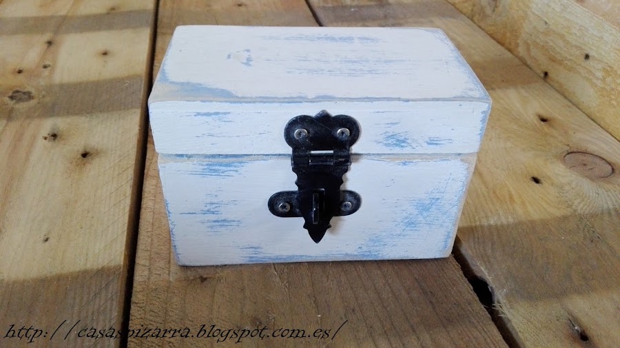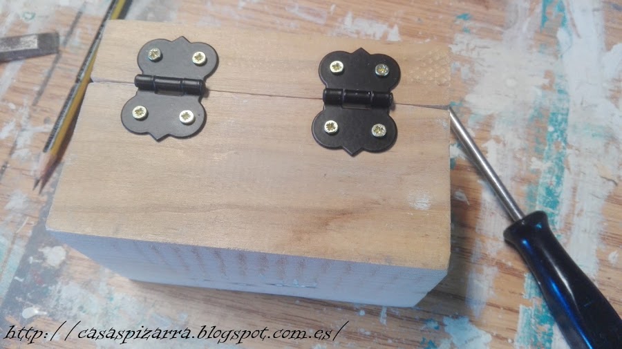 Como la primera idea era dejar la madera en su color natural, una vez que la caja estuvo vacía, le puse las bisagras y el cierre.