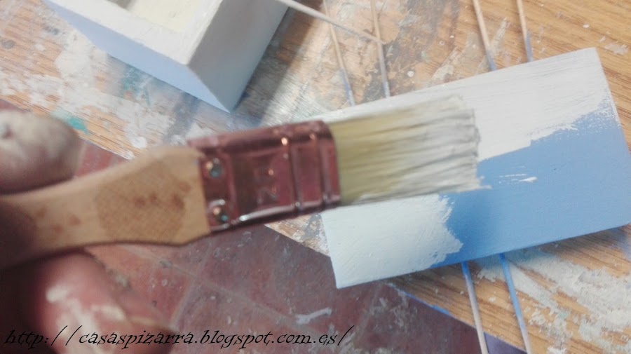 Primero pinté el interior de blanco, y el exterior de azul, ambas pinturas son Chalk Paint.