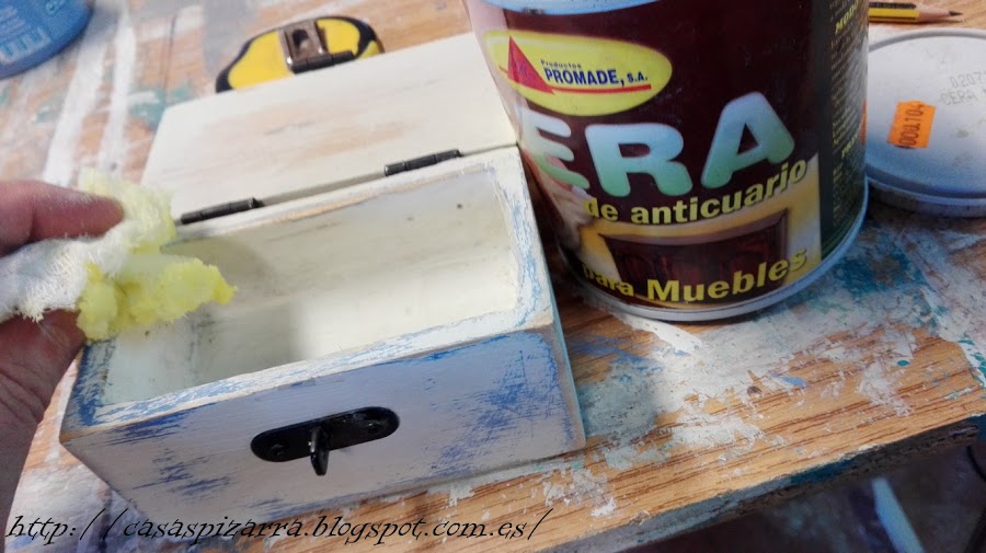 Era el momento de aplicarle una generosa capa de cera incolora para acabar con la cajita.