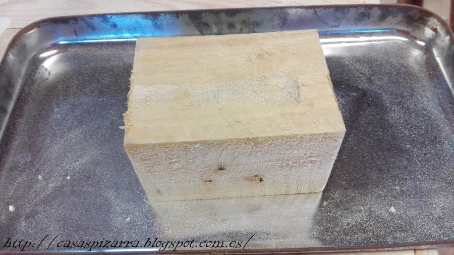 Primero debemos pasar el taco por la mesa de corte, de forma qu nos quedan dos partes, una de ellas que será la tapadera debe ser fina.