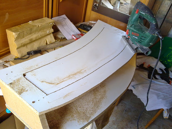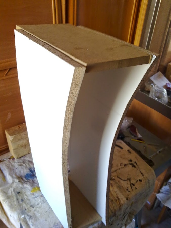 La forma del artilugio es curva en lo alto y oblicua de fondo ahí es nä.....para mis fabulosos conocimientos en carpintería sofisticada.