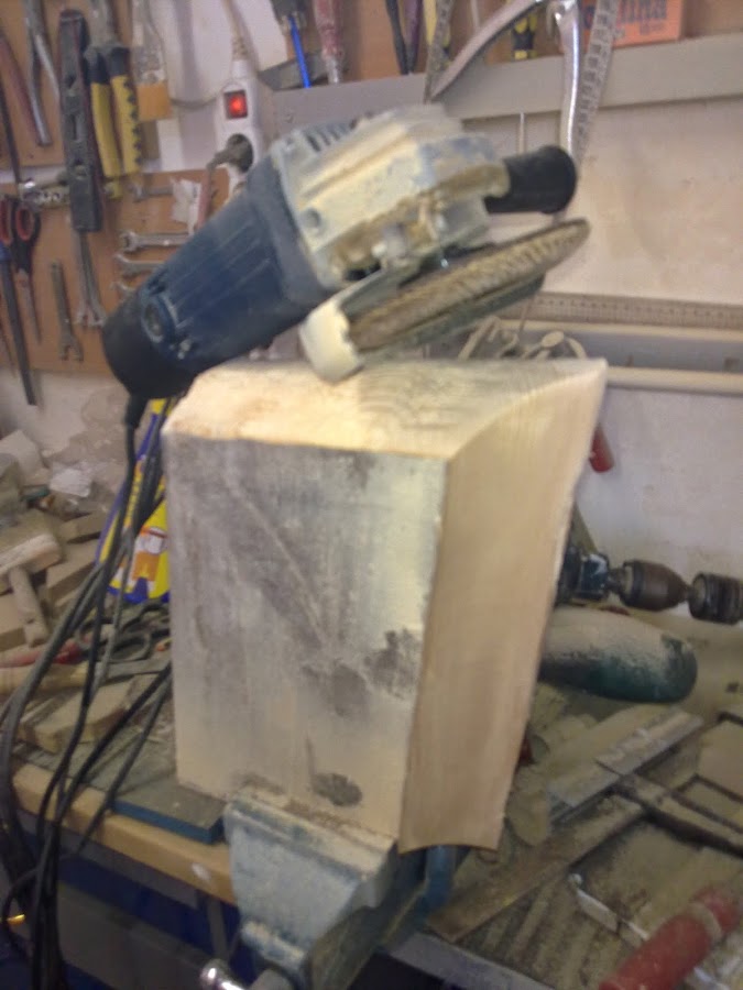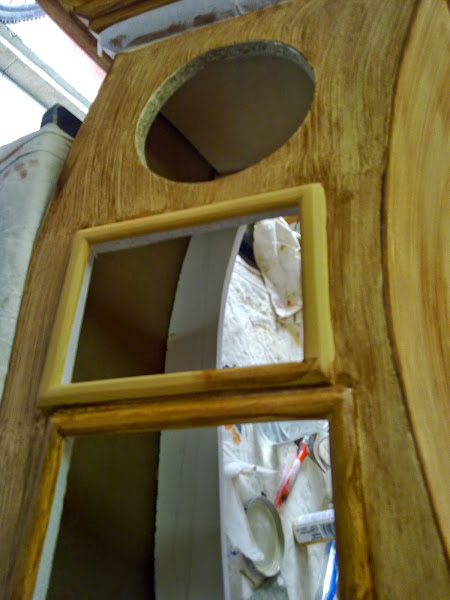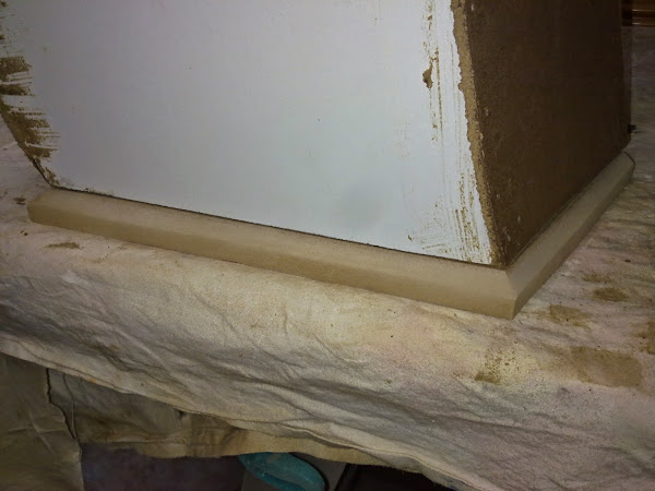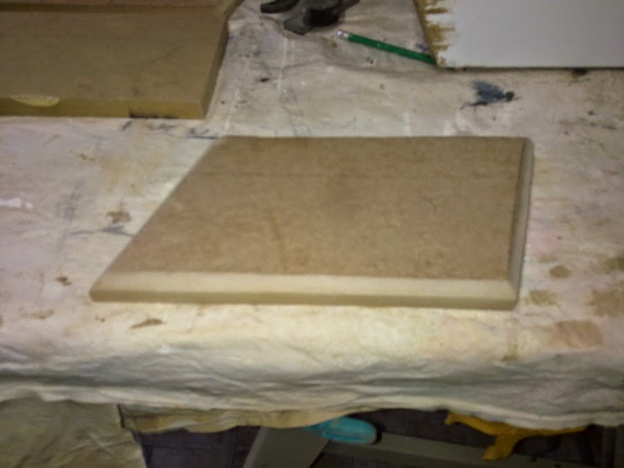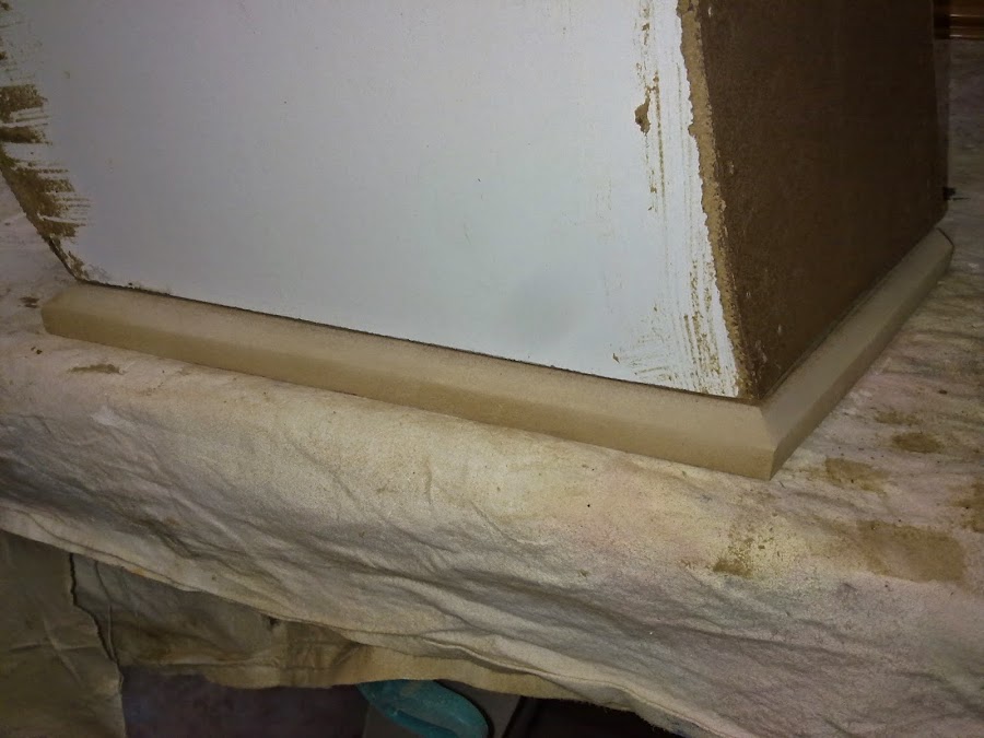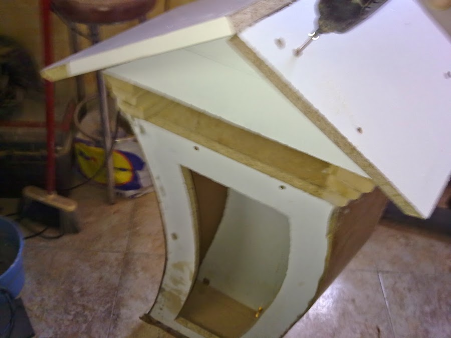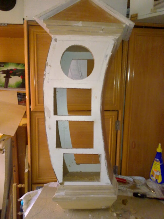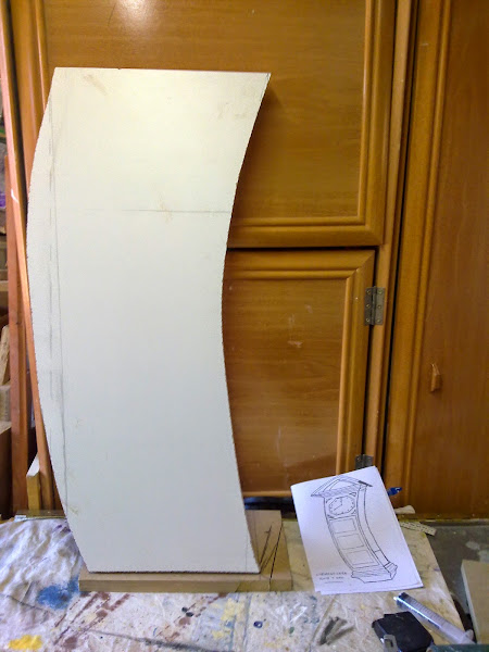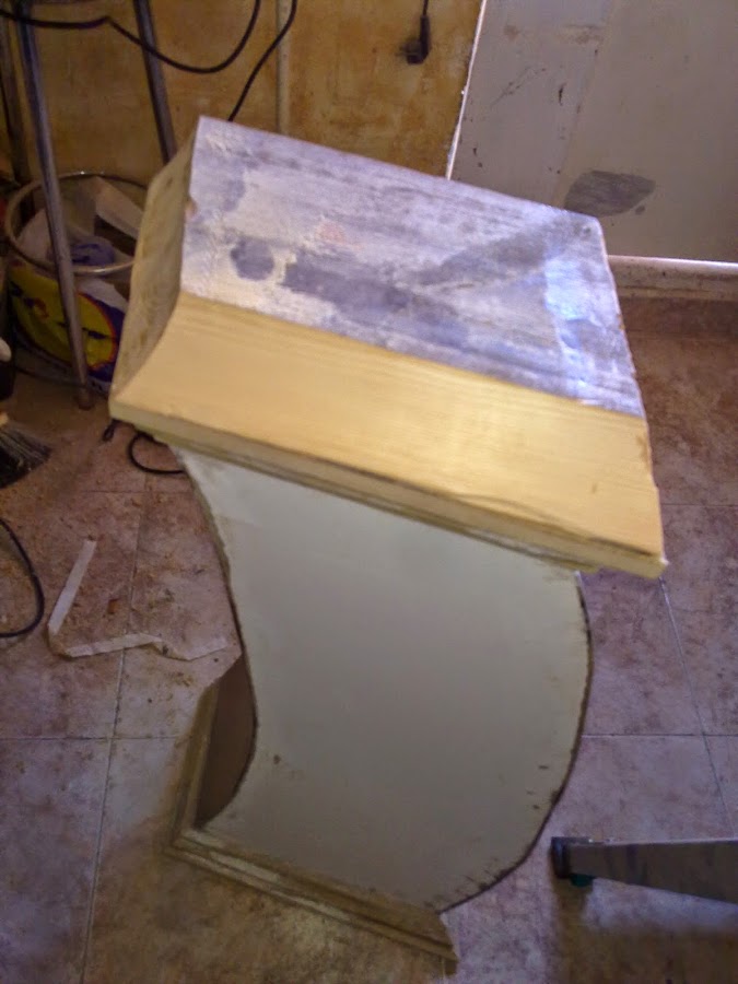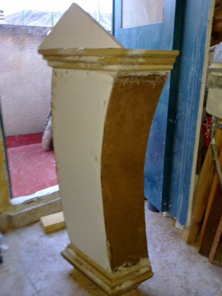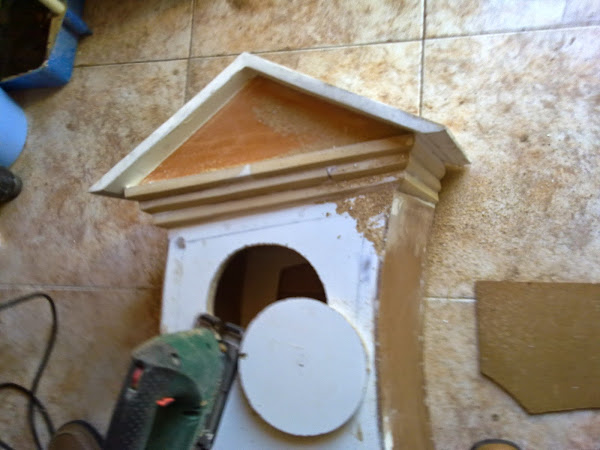 Con unos recortes de ( DM ) y un trozo de tablón de obra, vamos formando los ornamentos de la base y el tejado