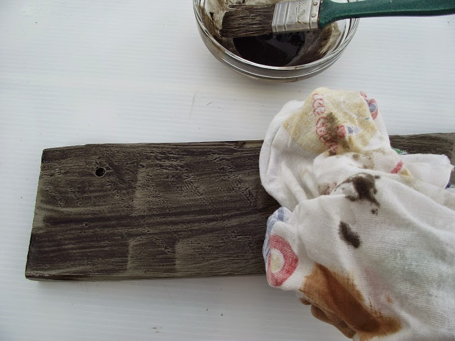 En este caso es un trozo de madera y lo hacemos de una vez, pero si fuera un objeto más grande o un mueble tendríamos que hacerlo por partes, dando la pátina y retirando antes de pasar a la siguiente sección.