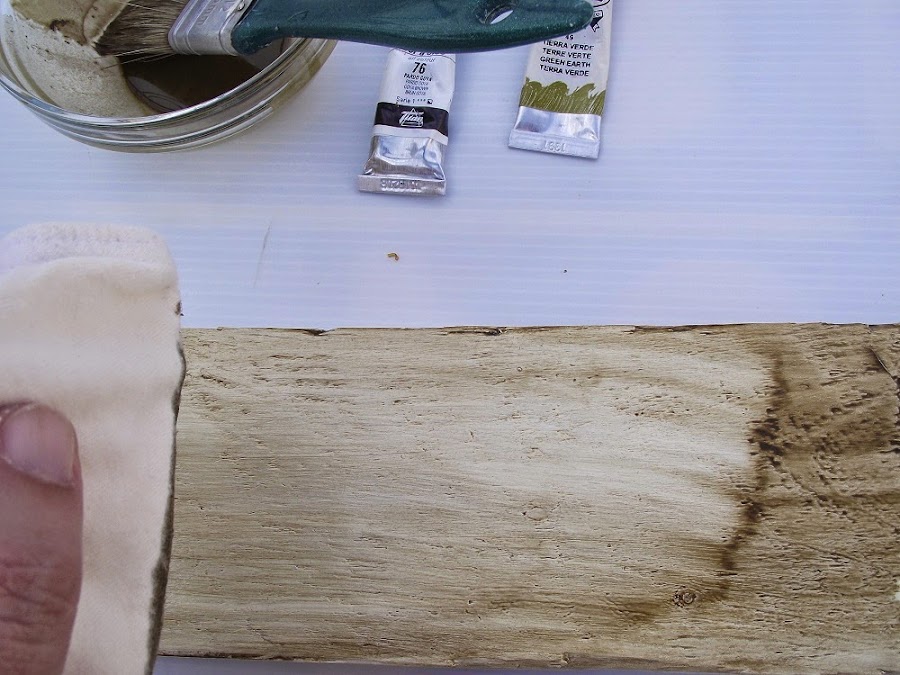 Si queremos una pátina más clara utilizamos óleo blanco en cualquiera de sus versiones: blanco de cinz, blanco de titanio... y por supuesto mezclar los óleos hasta obtener el color buscado. Vamos a verlo paso a paso.