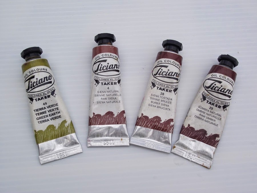 Para hacer la pátina necesitamos: aceite de linaza, esencia de trementina (aguarrás puro) y óleo del color que elijamos. El aceite y la trementina en una proporción aproximada de tres medidas de trementina por una de aceite.