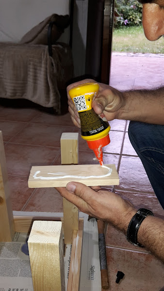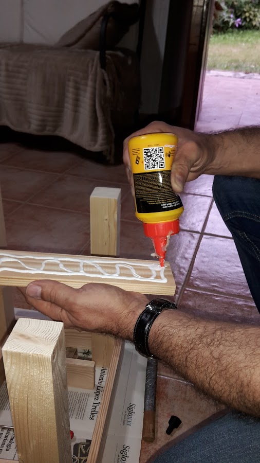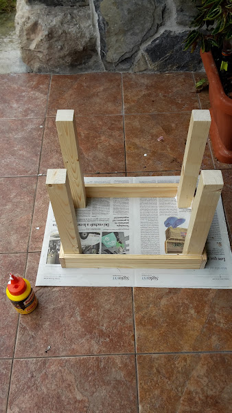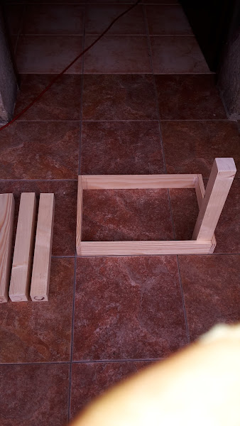 Y ahora hacemos ya el armazón cuadrado y vamos pegando las patas, solo pegarlas, luego ya tendremos tiempo de ir reforzandolas para que aguanten el peso de una persona.