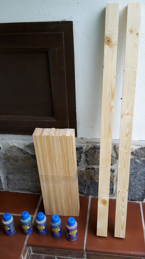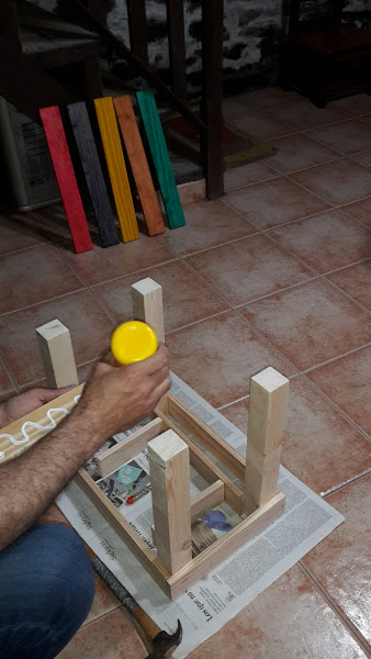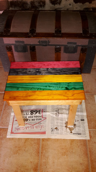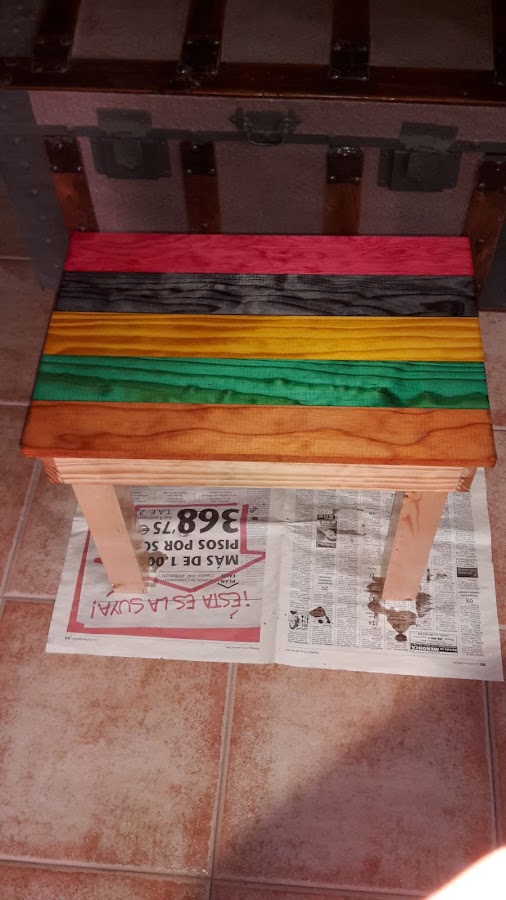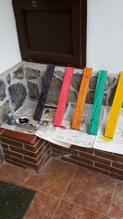 Pintamos las tablas de la parte de arriba del banco con tintes de colores