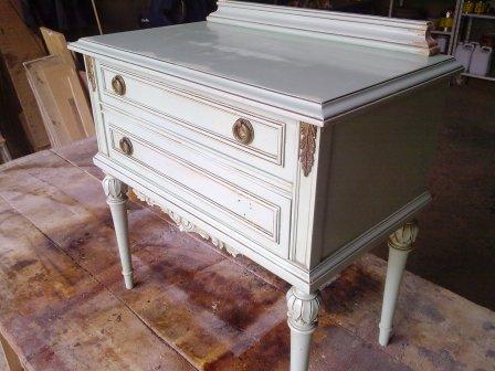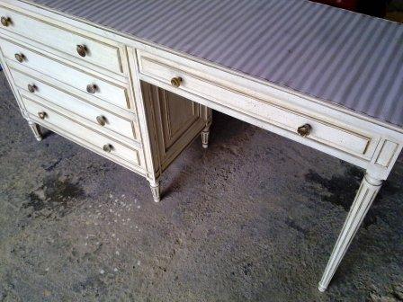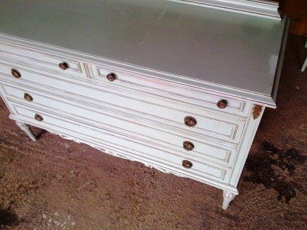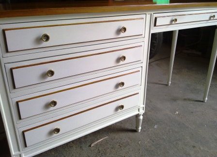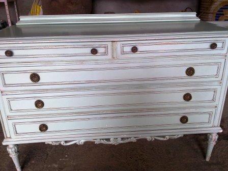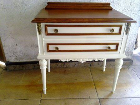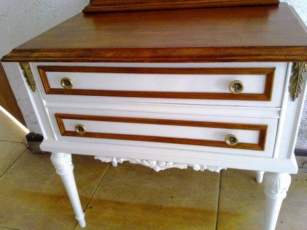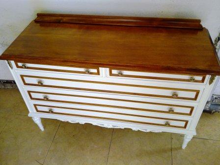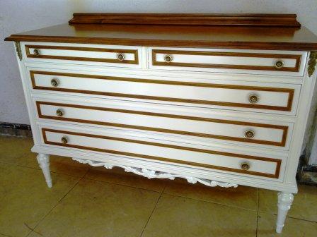 Partimos de unos muebles en color gris azulado y beige. Los hemos pintado en un blanco roto, y hemos dejado las encimeras y algunos detalles en color madera, resaltando así su personalidad. El cambio de los tiradores nos permite unificar todos los muebles para una misma estancia.