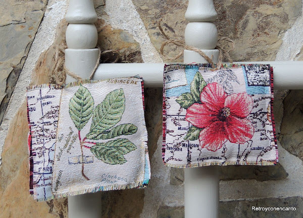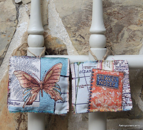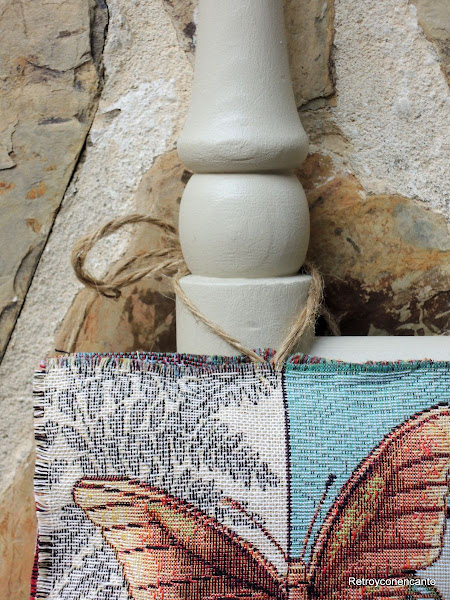 Por último, deshilachamos los bordes un poco, y cosimos unas tiras de cuerda rústica en medio de uno de los lados.