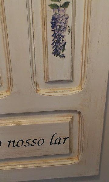 El resultado fue este, un perchero con un mensaje de bienvenida en portugués, que es nuestro pais vecino, lo tenemos muy cerquita y el idioma me encanta, por lo sonoro que es. La traducción sería "bienvenidos a nuestro hogar".
