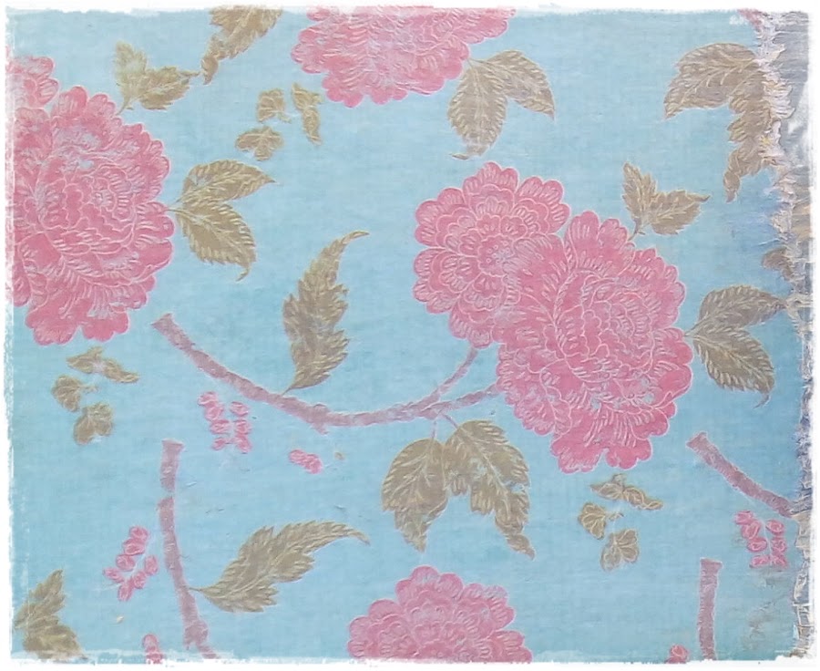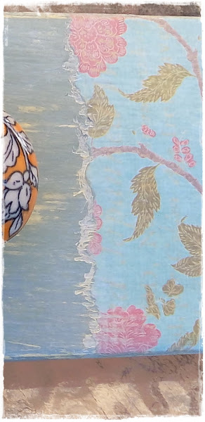 Una vez conseguido el decapado, hice el decoupage. Utilicé un papel de seda con motivos florales, en tonos rosas y celestes.
