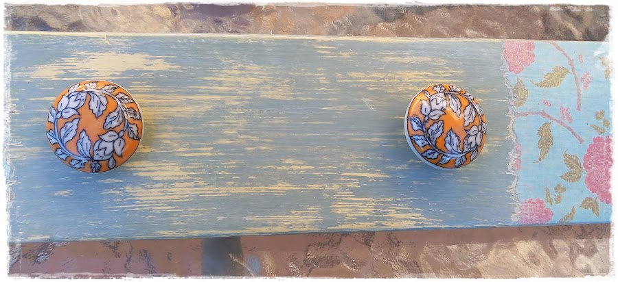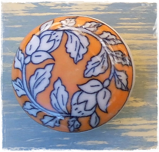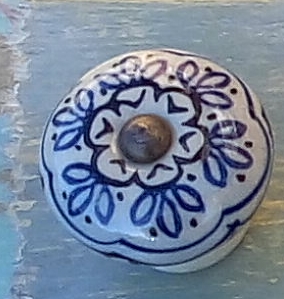 Me quedaba terminar el trabajo con unos tiradores. En el taller habia tiradones preciosos, yo elegí estos de porcelana con motivos en azules y naranjas.