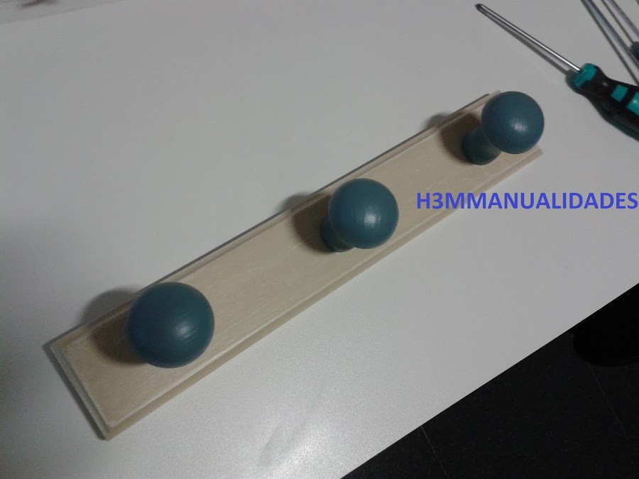 Sobre todo ello, base y colgadores, tres capas de barniz mate. ¡Por barniz que no quede! Igual soy exagerada, pero prefería darle así, ya que sufrirá continuamente el roce de chamarras y demás que se cuelguen en él.