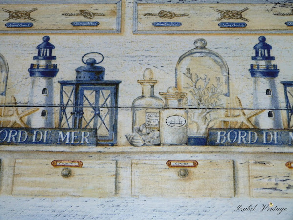 Decoupage con servilleta de estilo marinero o coastal sobre la que he aplicado después varias manos de barniz hasta conseguir su completa integración en los relieves de la madera.