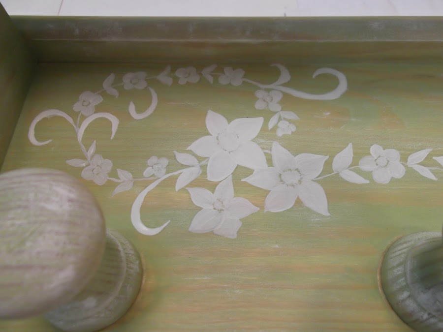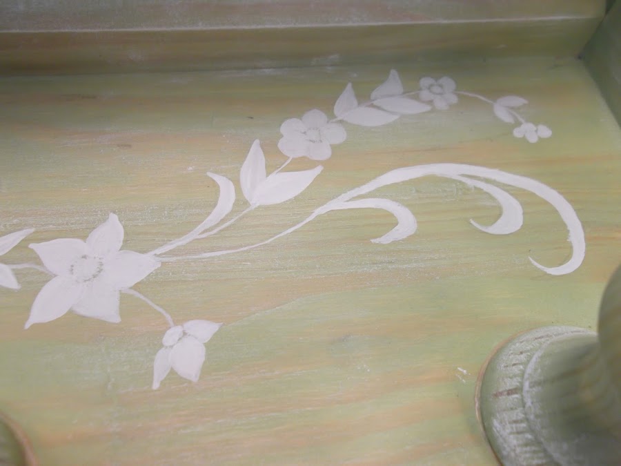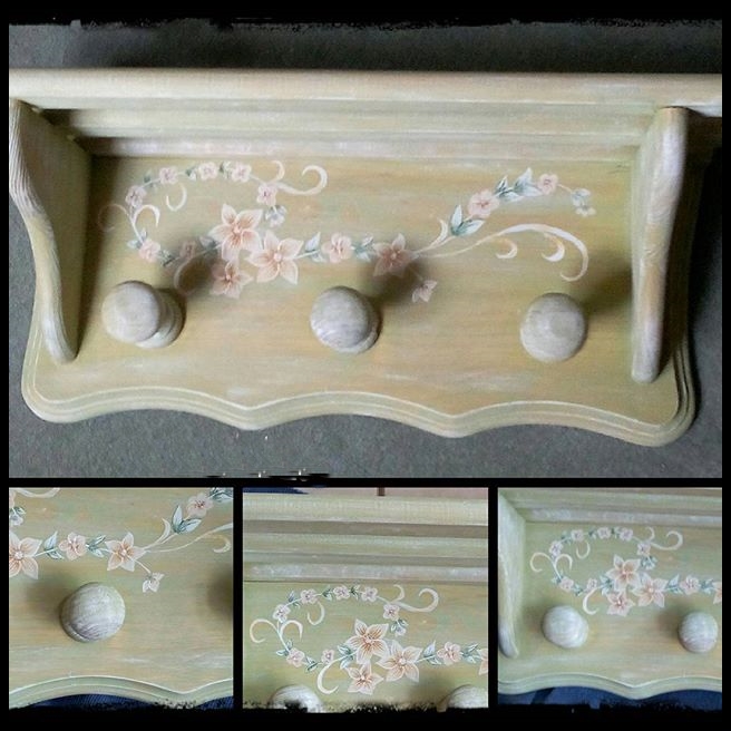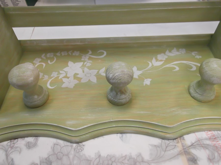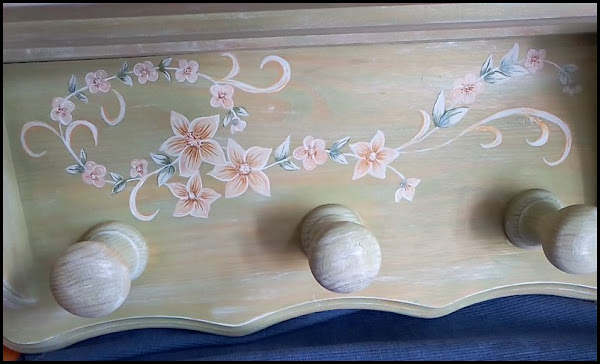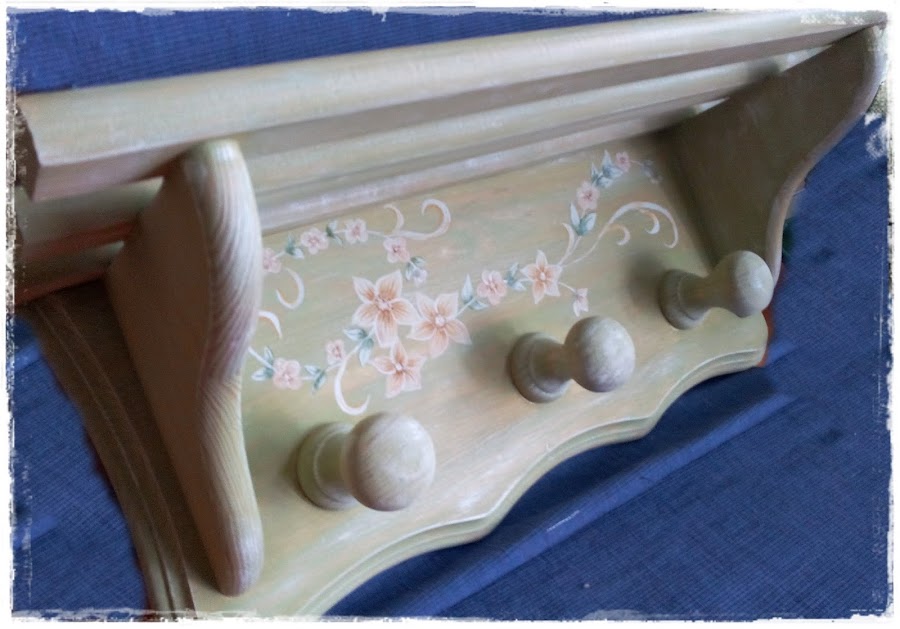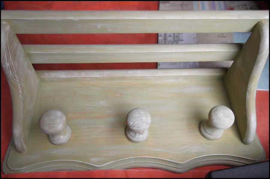 No quería mucho color,lo justo, porque el perchero me parecía ya de por si bonito con la aguada verde y los reflejos blancos que le había hecho.